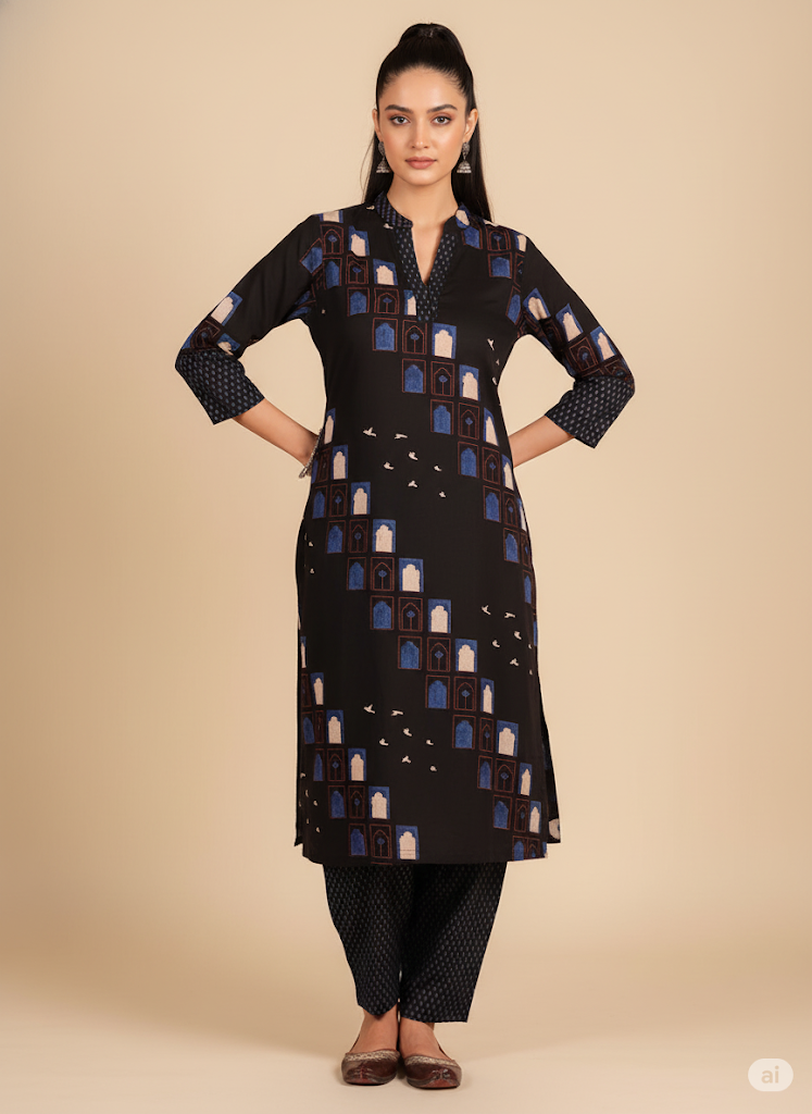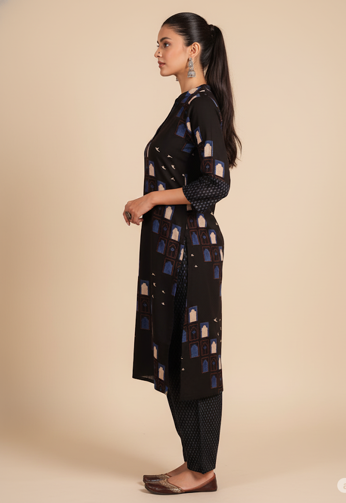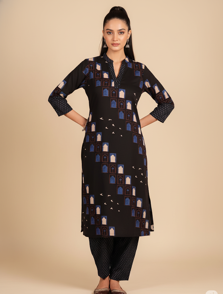 Silhouette / Length: Straight kurta, calf-length