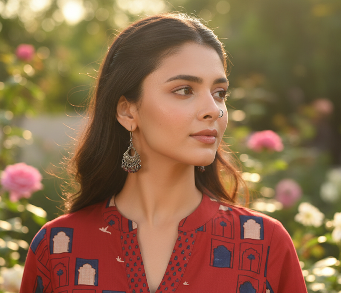 Elevate your everyday ethnic wear with this elegant Brick Red Cotton Slub Straight Kurta Set. Crafted from premium cotton slub fabric, the kurta features a straight, calf-length silhouette paired with a smart mandarin collar and 3/4th sleeves for a refined yet comfortable look. The breathable fabric ensures ease of movement and day-long comfort.