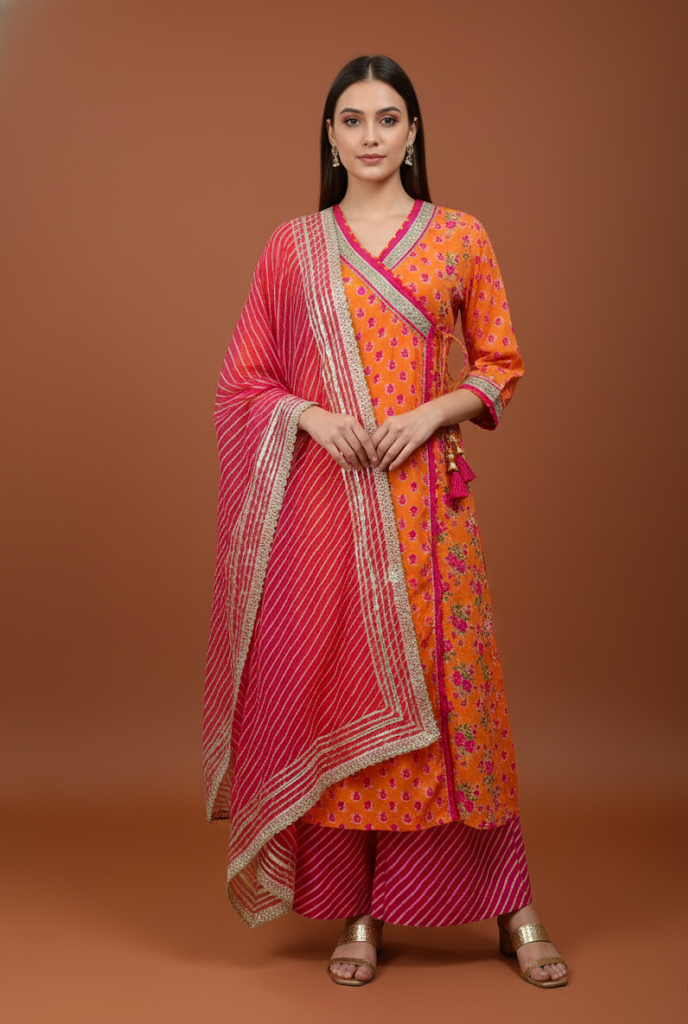 Experience elegance and comfort with this stunning Vibrant Orange Kalidaar Kurta from FAMEROOTS. Crafted from premium Cotton Mulmul, the outfit offers exceptional softness, breathability, and fluid movement. Designed in a traditional Kalidaar silhouette, the kurta features a beautifully flared, gathered structure that enhances its graceful fall and adds a festive charm.